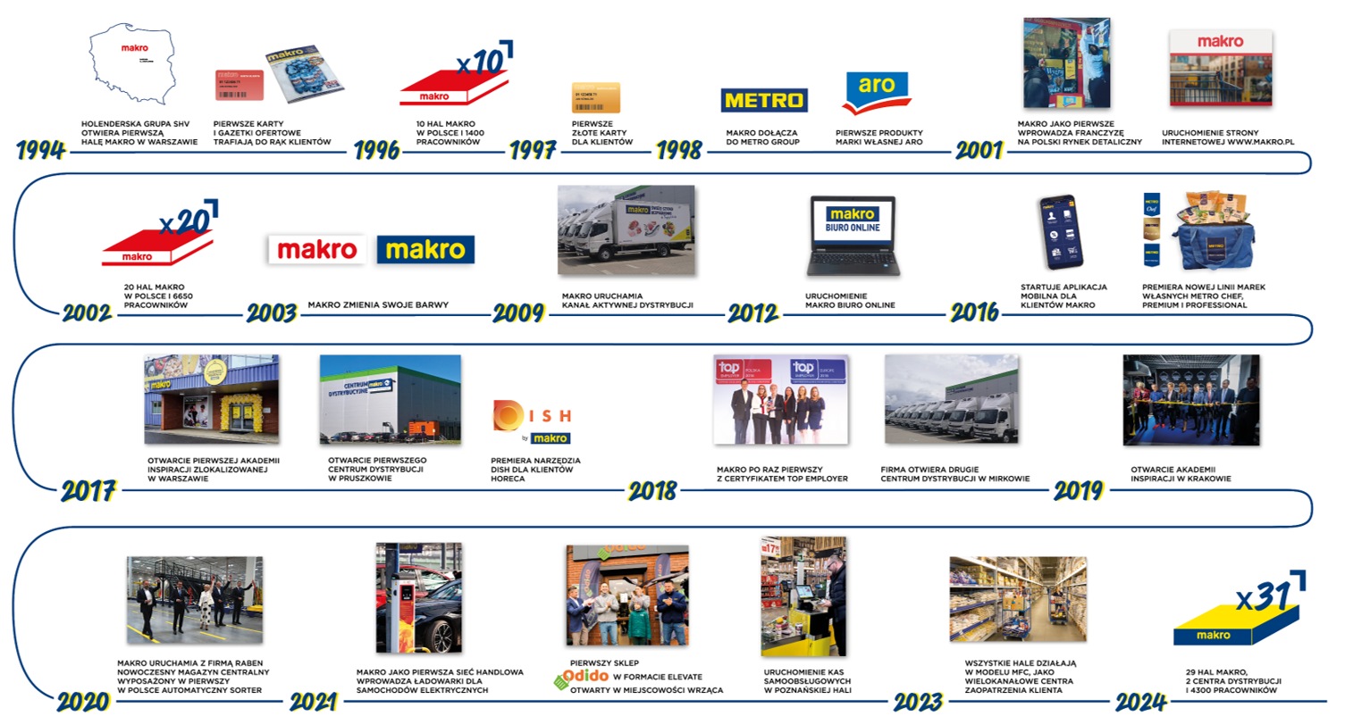Rok 2024 jest dla naszej firmy wyjątkowym czasem. Dokładnie 30 lat temu na polskim rynku pojawiły się pierwsze hale MAKRO. Od trzech dekad