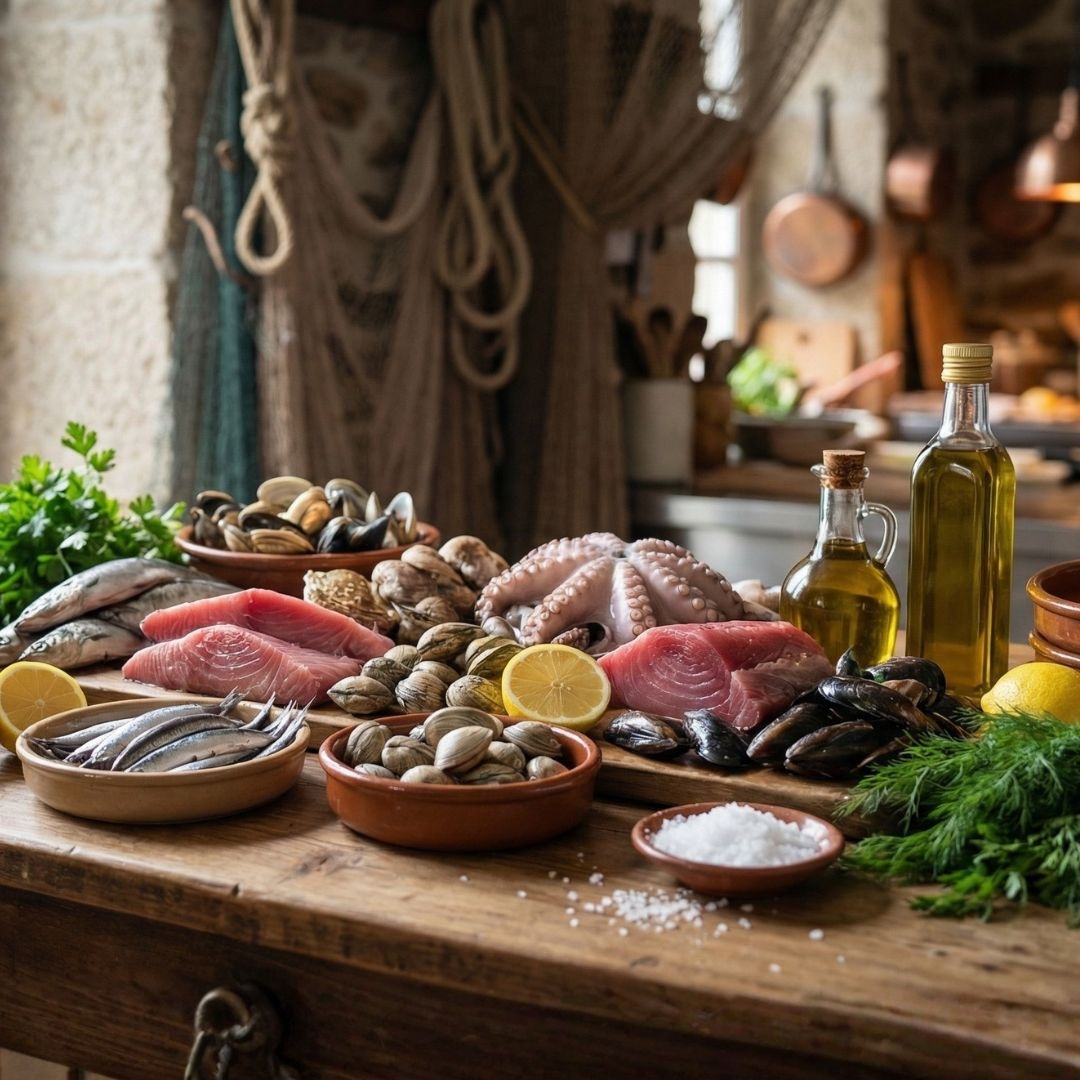 Galicja i Kantabria należą do najbogatszych łowisk Europy — zimne wody Atlantyku dostarczają owoce morza o wyjątkowej intensywności smaku.