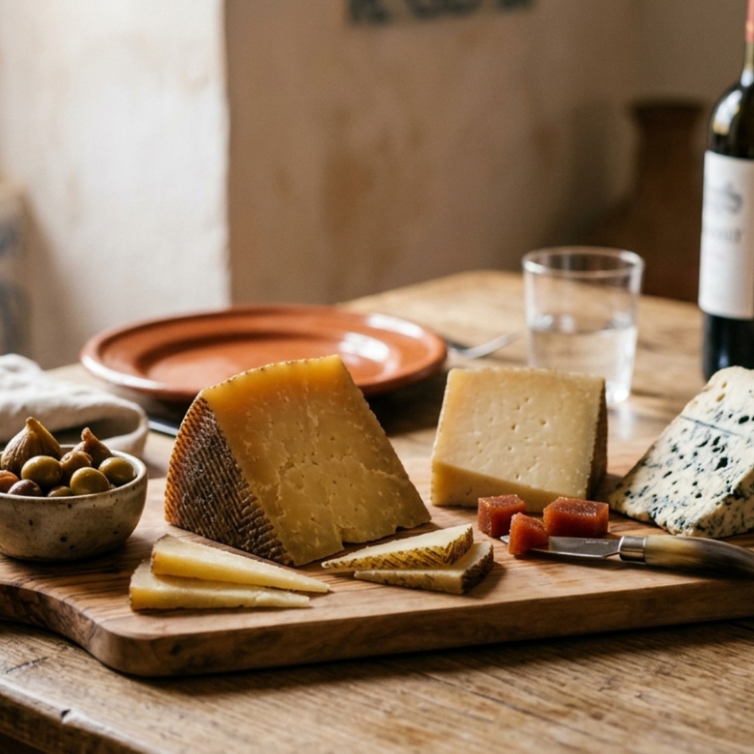 Od manchego dojrzewającego miesiącami po świeżą roladę kozią — każdy ser niesie ze sobą region, klimat i rzemiosło. Hiszpańskie sery to nie tło dla dania — to jego charakter.