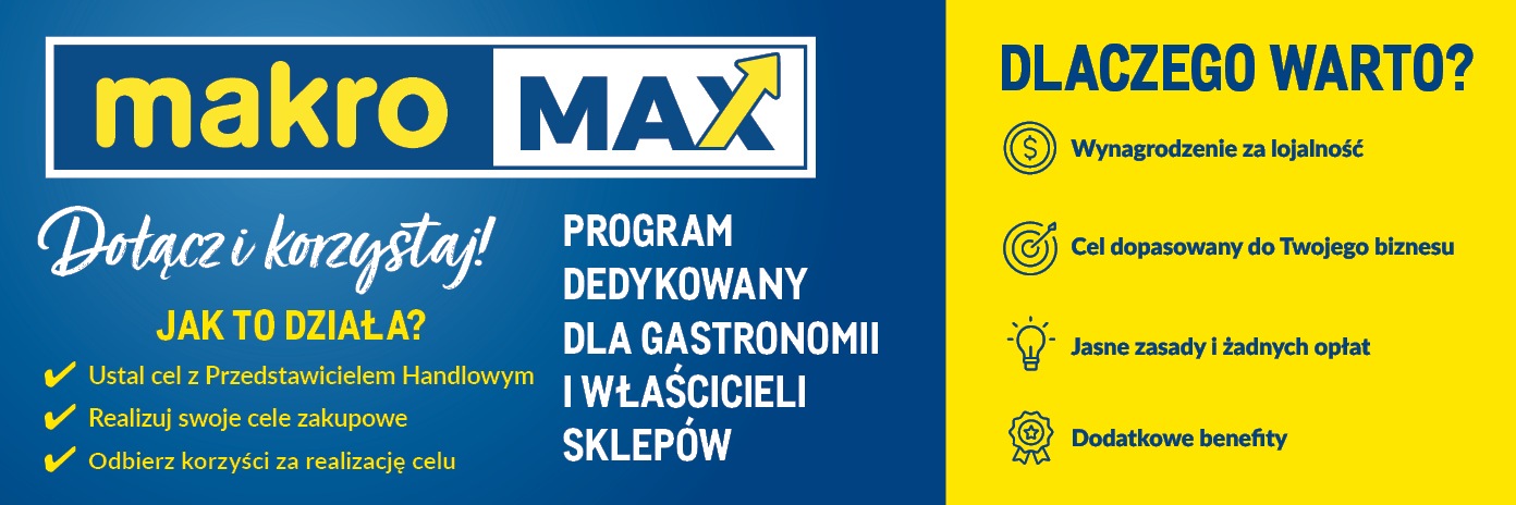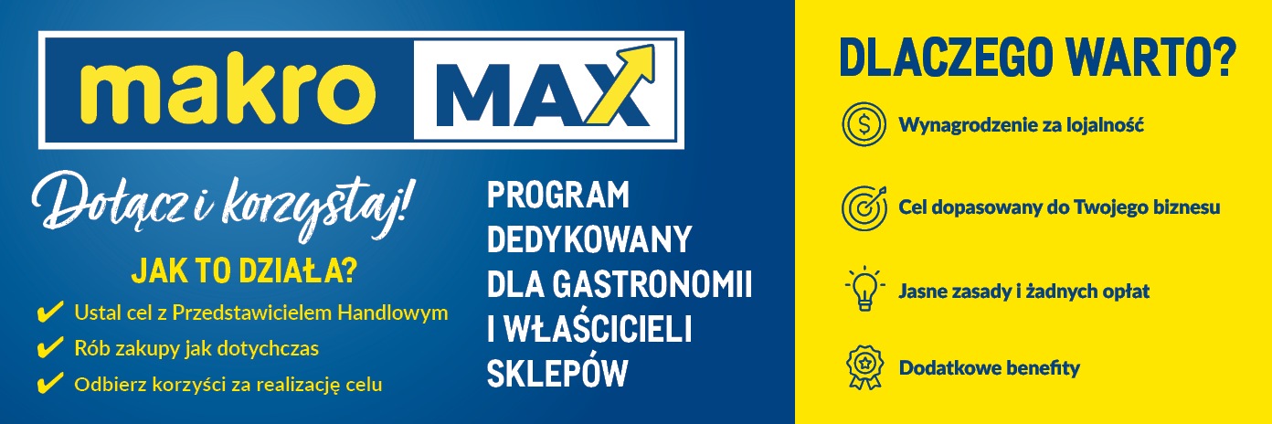 Administratorem Twoich danych jest: MAKRO Cash and Carry Polska S.A. z siedzibą w Warszawie. Dane podawane w formularzu przetwarzamy w celu udzielenia informacji o programie lojalnościowym Makro Max. Więcej informacji o przetwarzaniu Twoich danych osobowych i Twoich prawach znajdziesz w polityce prywatności.